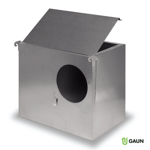 Nido para conejos fabricado en chapa galvanizada. Tapa abatible y suelo en tablex de madera que se asegura que los gazapos no estén expuestos a la intemperie.