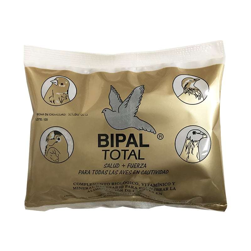 BIPAL TOTAL es un producto biológico , vitamínico y mineral, por lo tanto además de aportar vitaminas y minerales como otros productos en el mercado, posee un potente y eficaz regulador del aparato digestivo que aumenta las defensas del organismo y que es totalmente necesario para la salud de las aves en cautividad.